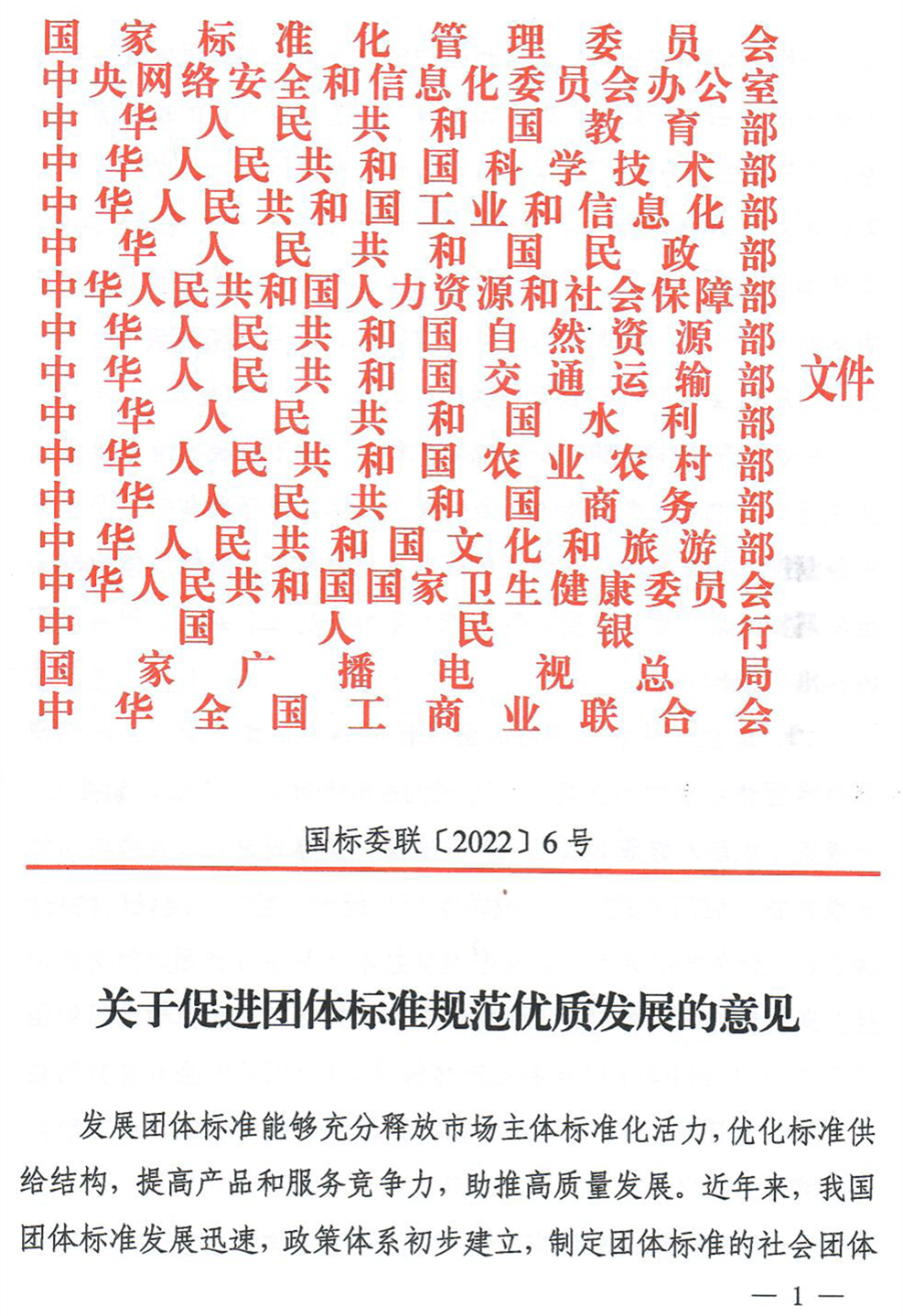 为贯彻落实《国家标准化发展纲要》,规范团体标准化工作,促进团体标准优质发展,经国务院标准化协调推进部际联席会议全体会议审议通过,国家标准化管理委员会等十七部门联合印发了《关于促进团体标准规范优质发展的意见》。