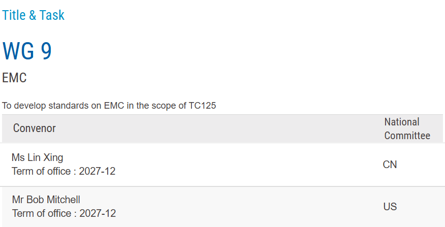 推动IEC/TC125 成立EMC标准化工作组,我院专家当选为工作组召集人,任务为制定TC125范围内的EMC标准。