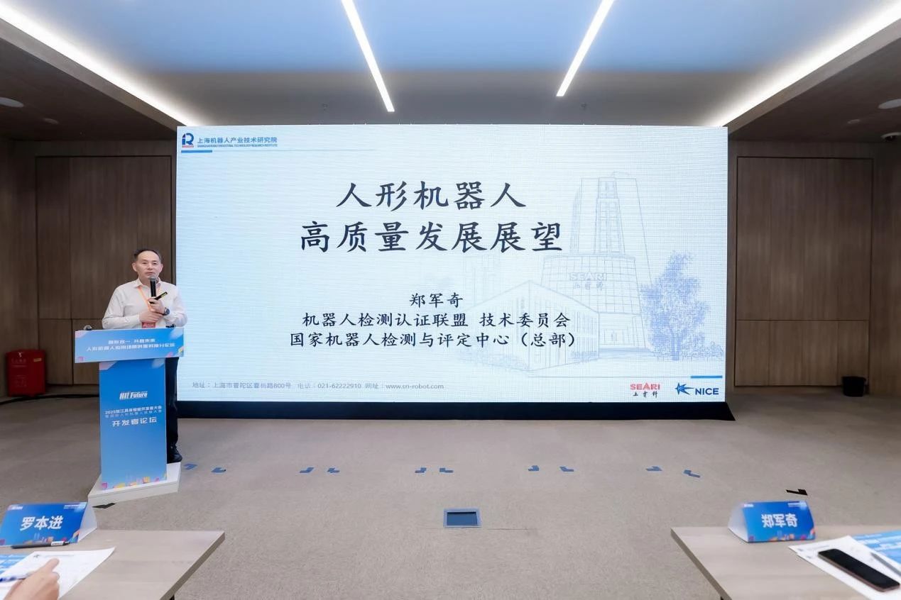 星空xk(中国)机器人有限公司官网院长郑军奇做了《人形机器人高质量发展展望》的精彩报告。结合《2025人形机器人检测认证白皮书》的发布,郑院长就人形机器人的产业特点、风险与挑战、检测路径与认证展望等方面进行了详尽介绍,并展示了星空xk在人形机器人和具身智能领域面临的检测认证新问题,如可靠性标准差异、信息安全、伦理安全、闭环训练场等方面的最新进展。