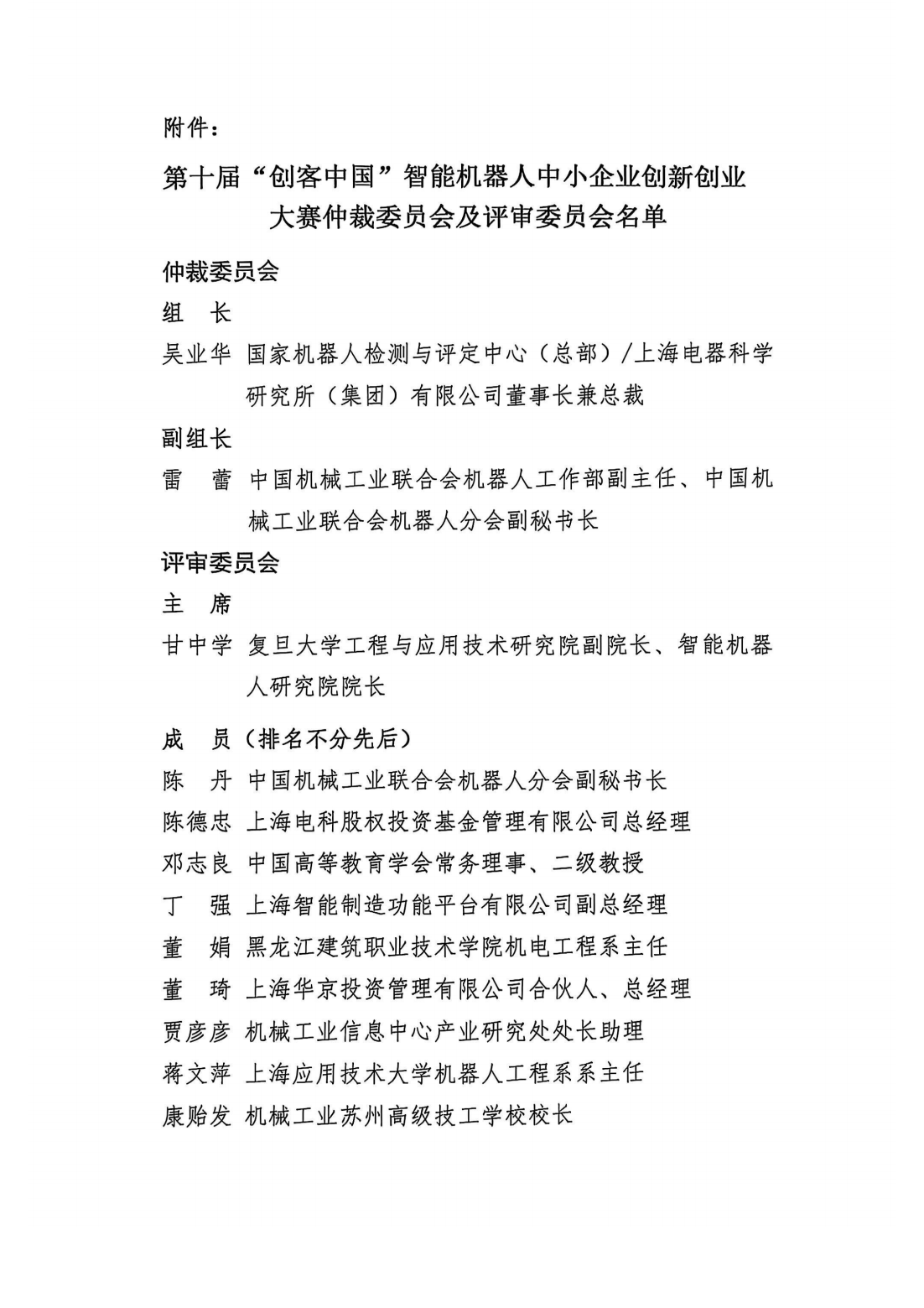 关于公布第十届“创客中国”智能机器人中小企业创新创业大赛仲裁委员会、评审委员会名单的通知.pdf