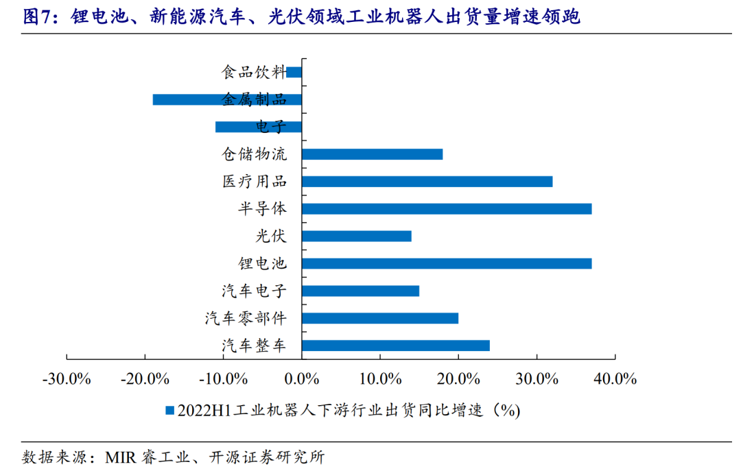 不过仔细分析的话,可以发现,以新能源汽车、锂电、光伏、医疗、半导体等先进制造业需求旺盛,成为拉动工业机器人销售增长的主要动力,无疑这里面就潜藏着行业迈向下一阶段的机会。