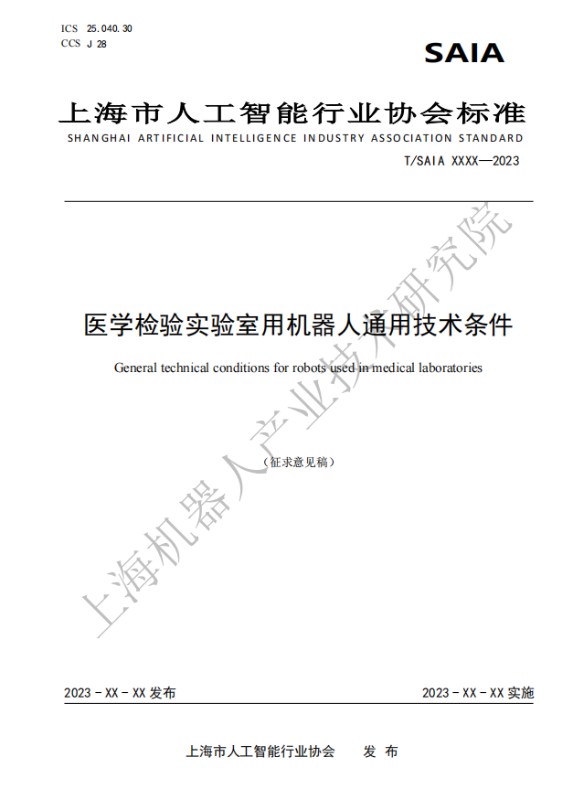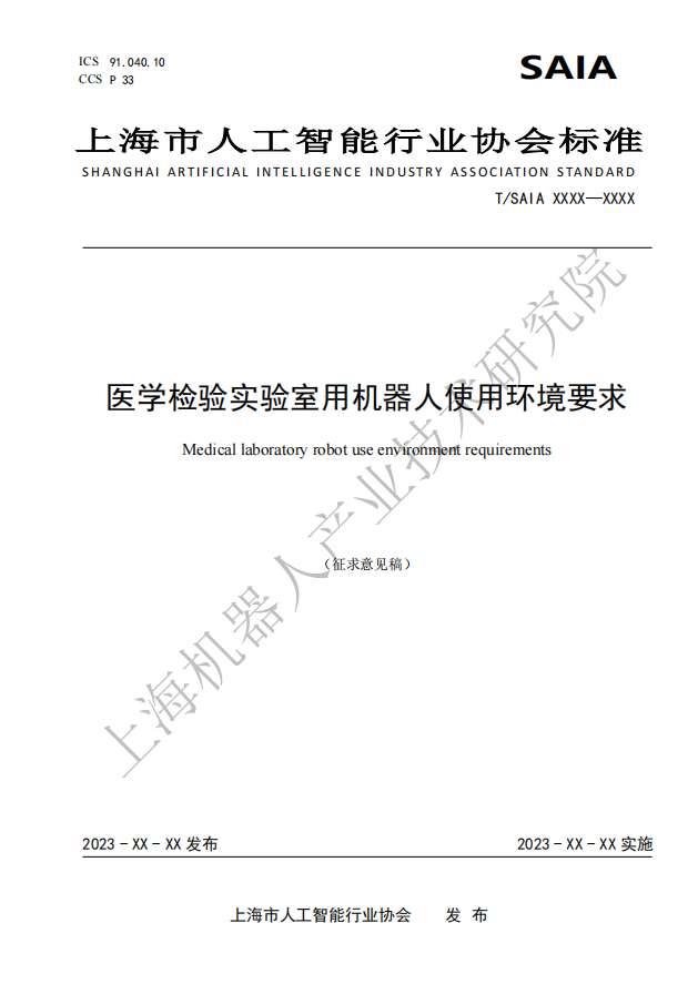 由上海市人工智能行业协会归口,星空xk(中国)机器人有限公司官网有限公司作为主要起草单位研制的四份标准:《医学检验实验室用机器人通用技术条件》、《医学检验实验室用机器人系统安全要求》、《医学检验实验室用机器人交互要求》、《医学检验实验室用机器人使用环境要求》现公开征求意见。