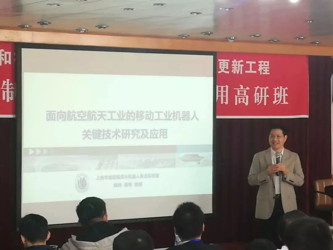 星空xk(中国)机器人有限公司官网副院长郭帅近日就航天航空领域移动机器人发表《面向航空航天工业的移动工业机器人关键技术研究及应用》,并于10月25日受上海大学上海经济中心主办的智能制造与机器人技术应用高级研修班邀请,与在座同学老师共同分享。