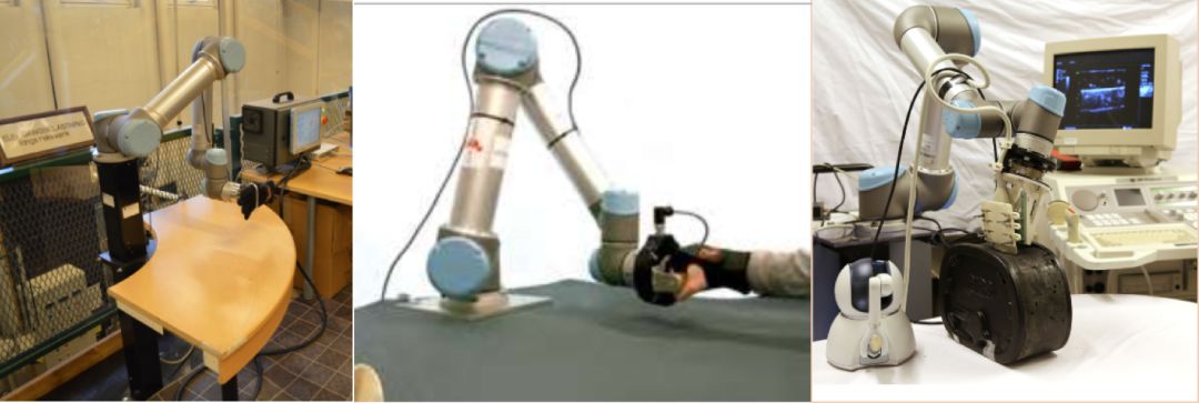南丹麦大学使用UR机器人对不同病人的训练轨迹进行研究,以达到更适应的状态。奥斯陆大学将UR机器人应用于超声波检测,配合末端力矩传感器的使用,运用力位混合控制算法,UR与人友好交互,实现自动的超声波检测。